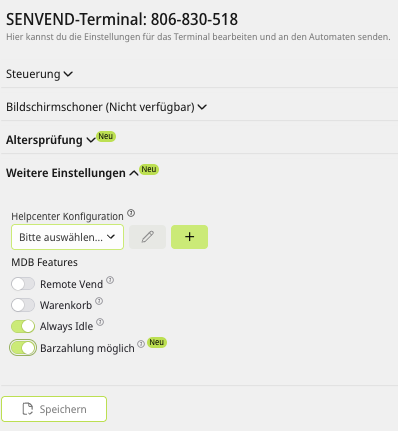Altersverifikation kann über my.SENVEND.com eingestellt werden, wenn keine Bargeldsysteme verwendet werden.