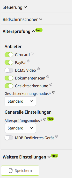 Gehe ins Hauptmenü → G-Snack → Altersabfrage Produkt einstellen