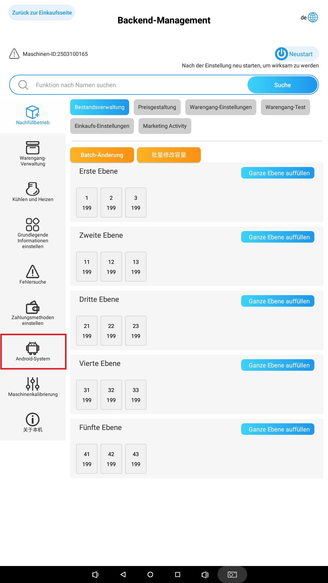 Diese Einstellungen gelten für alle TCN Vending Machines mit großem Touch Display.