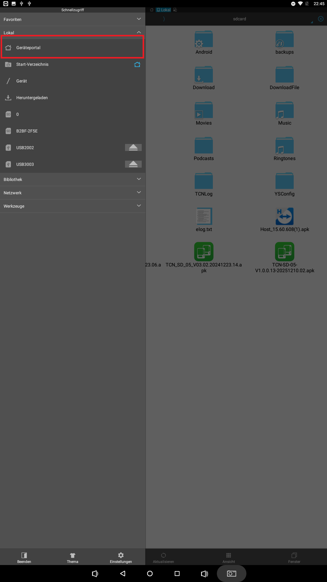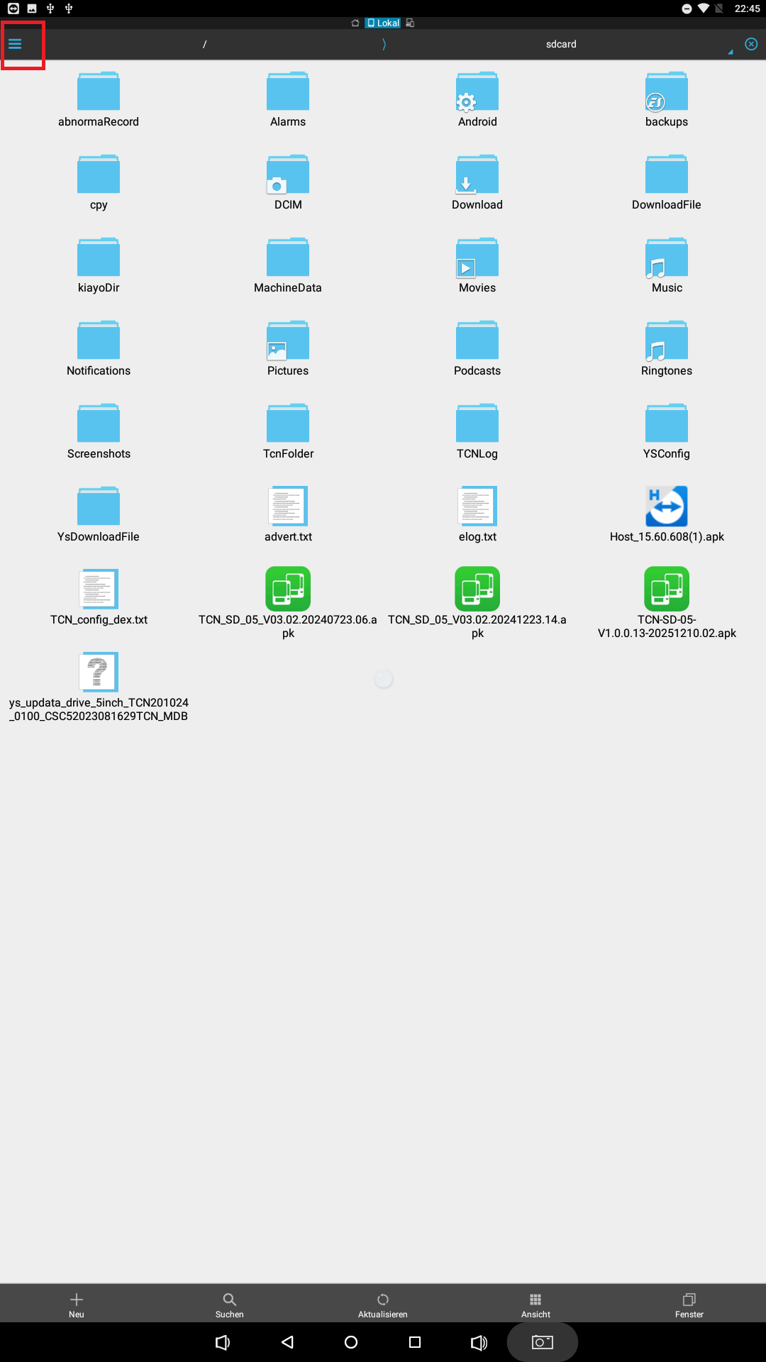 5. Im ES-Browser auf die drei Balken oben links drücken