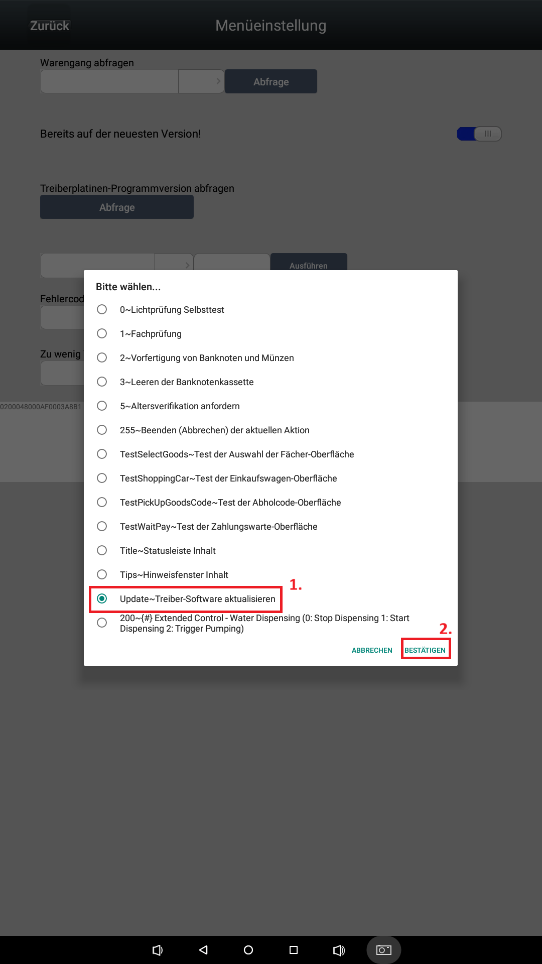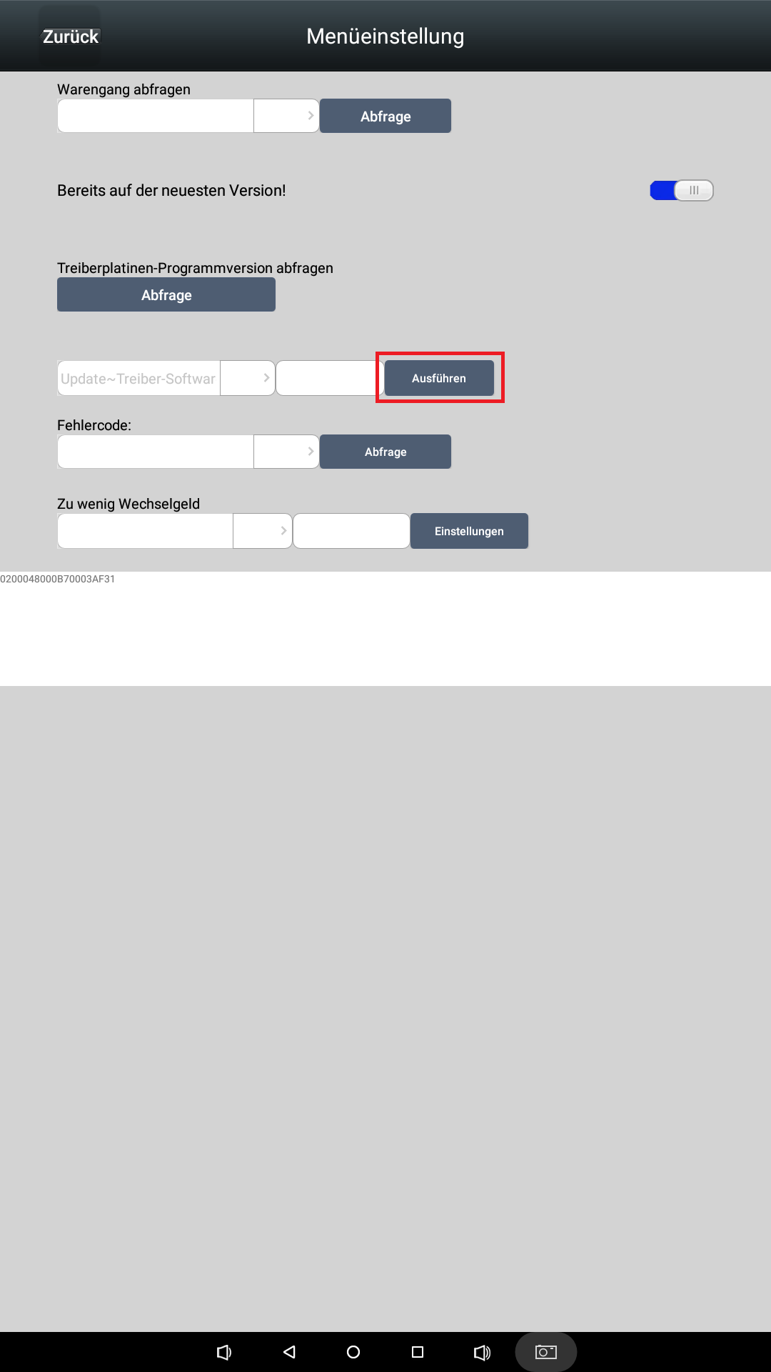 17. Das folgende Popup sollte erscheinen. Nachdem das Update erfolgreich war gibt der Automat akustische Signale aus und wechselt automatisch zurück. Das Update ist dann beendet.
