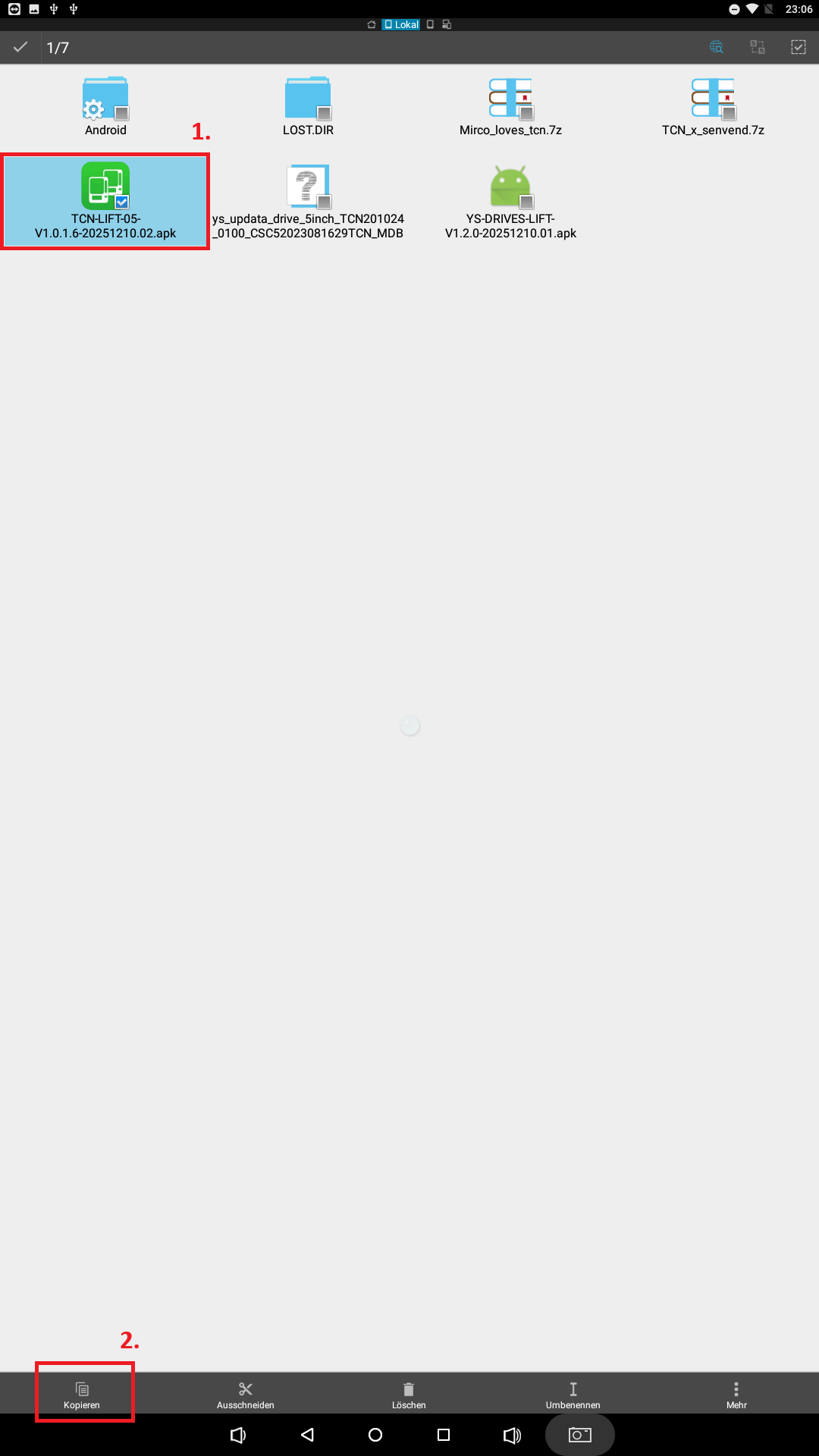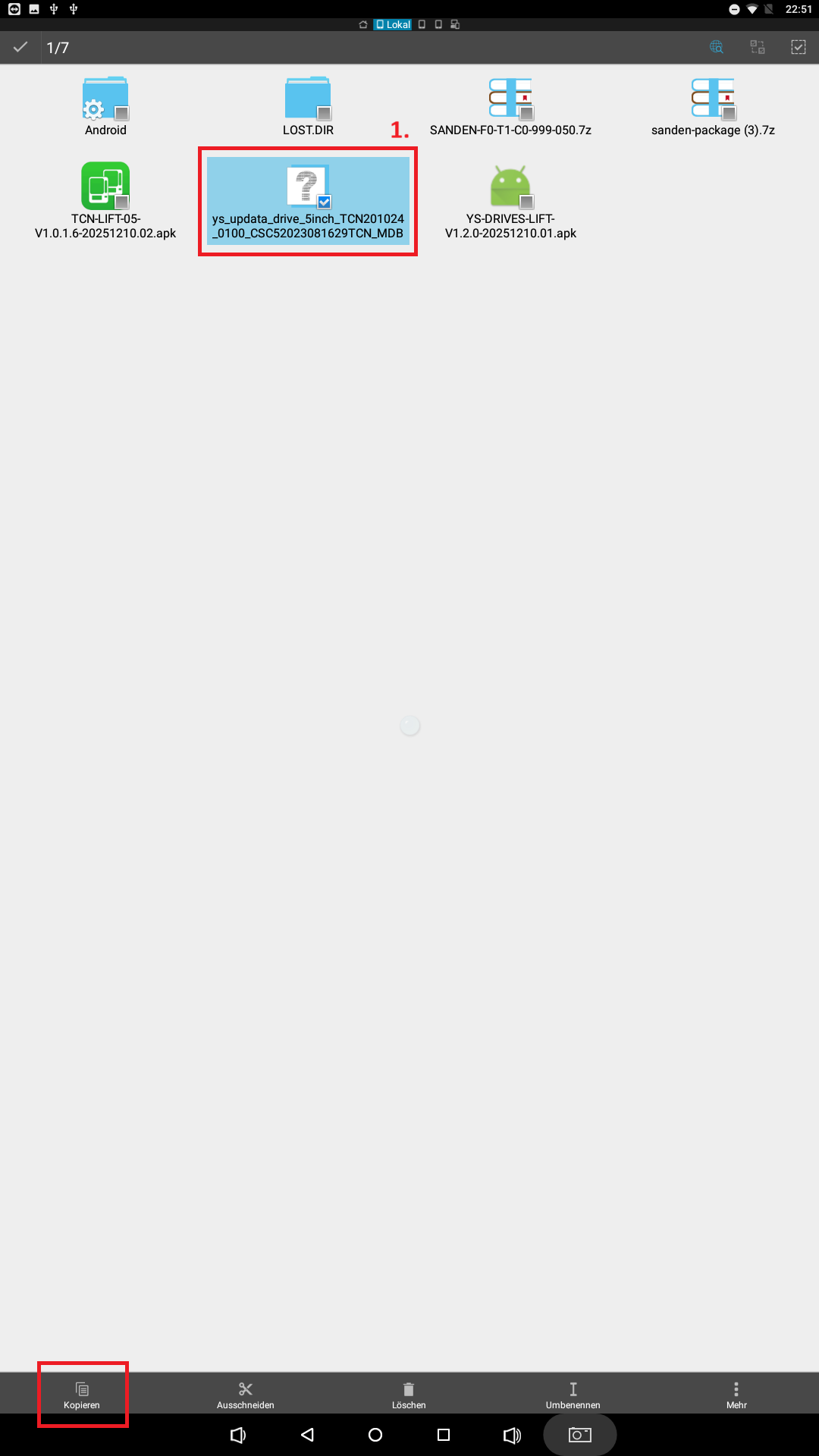 7. Den USB Stick auswählen (0 ist immer die interne SD Karte und der Stick befindet sich dadrunter)