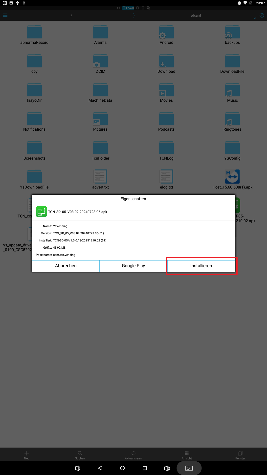 11. Danach auf die .apk Update Datei drücken und im Popup auf Installieren drücken.