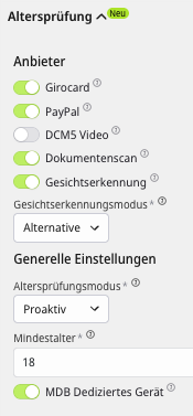 Altersverifikation Einstellungen